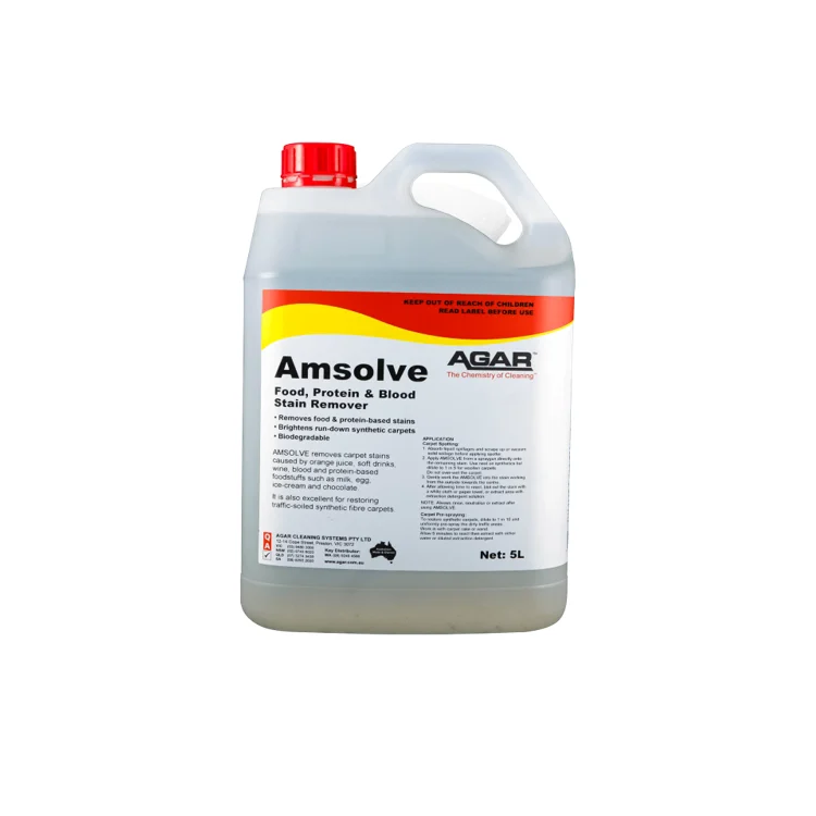 AGAR Amsolve is a carpet stain remover designed to break down food, protein and blood stains on synthetic carpets.