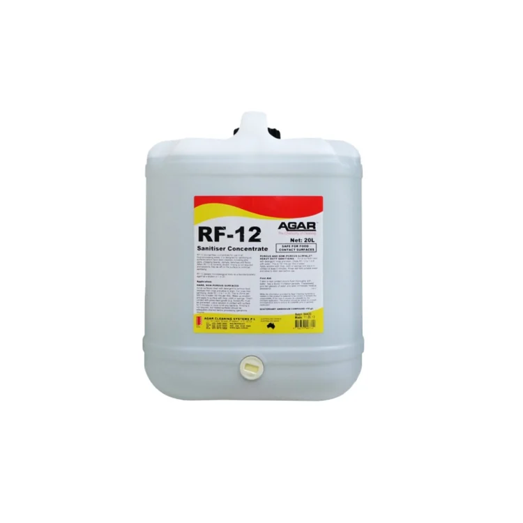 AGAR RF-12 – 20L is a professional food-grade sanitiser concentrate designed for commercial kitchens, food processing facilities and hospitality environments across Australia.