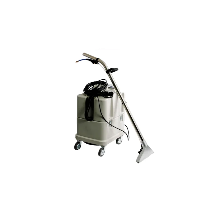 The unit includes a floor wand with three nozzles and an upholstery tool, allowing operators to clean carpets, rugs, furniture, and vehicle interiors efficiently. Its robust polyethylene tank construction and ergonomic design provide durability and easy manoeuvrability in professional cleaning environments.